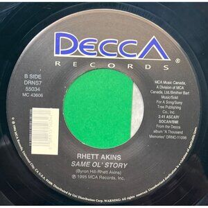 This 7-inch vinyl single by Rhett Akins features the hit "That Ain't My Truck" along with "Same Ol' Story" on the B-side, released by Decca Records in 1995. It is a collector's item for fans of country music, showcasing Akins' signature style and storytelling.