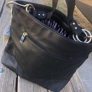 This shoulder bag has just the right touch of sparkle! It has a zipper divider on the inside, plus a side pocket that zips. It also has two open pockets for phone, etc. on the opposite side.
