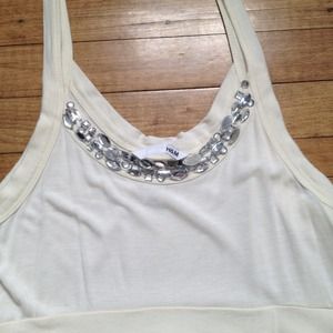 Pretty and flowy white baby doll top. Perfect for warm weather! Rhinestone detailing on the neckline. This can be worn as a long top, or even a bathing suit cover up! Never worn NWOT!