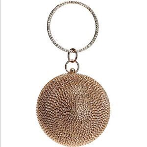 Rhinestone Ball Shaped Purse Clutch Ring Handle Party Evening Bag with Chain