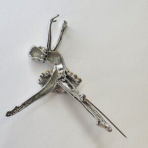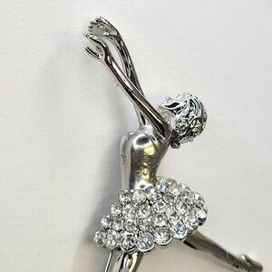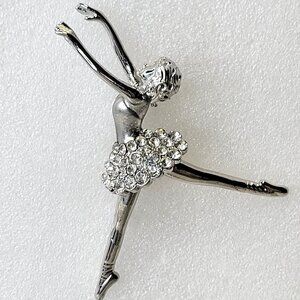 Rhinestone Ballet Dance Brooch Pin Silver tone Dancer Brooch