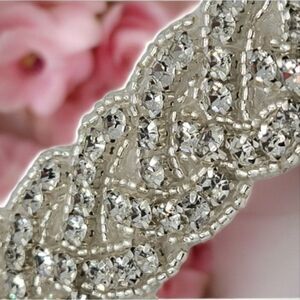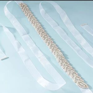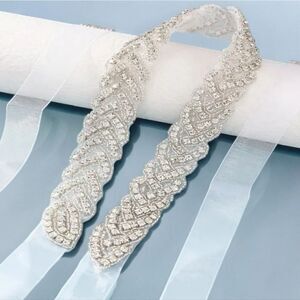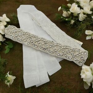Rhinestone Beaded Bridal Belt Bride Wedding Gown Dress Sash White Long Plus NWT