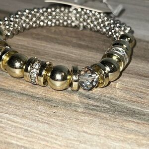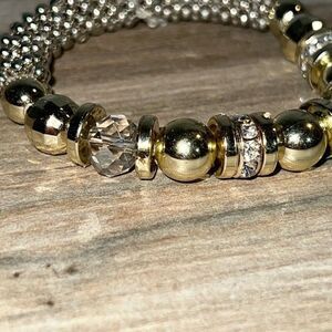 Rhinestone Beaded Stretch Bracelet Gold Silver Tone Chunky Classic Stackable New