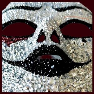 A Unique Masterpiece Handmade Mask, Hand-Painted with Over 3,000 Crystals. A great investment to use on special occasions for Masquerade Parties, Mardi Gras’s, Special Parties, Halloween Ocassion and more!