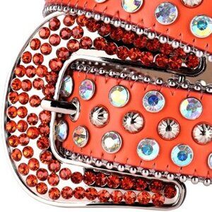 Rhinestone Belt–SUN030–Orange Belt, Multi-Colored Rhinestones & Silver Studs