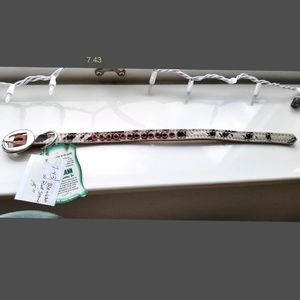 Perfect for that cute pooch. FineHerman Oaks leather collar with natural hair and RED rhinestones. You won't find another like it with this quality.