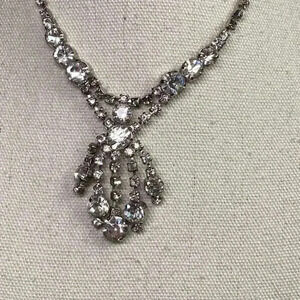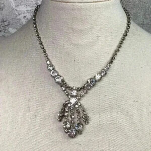 Rhinestone Bling Necklace with Rhinestone Dangle Drops Pendant Vintage 1950’s