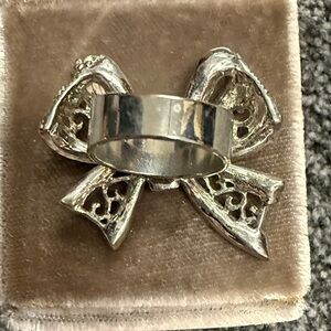 Add a touch of elegance to your outfit with this cute silver bow ring. Perfect for any occasion. Fashion jewelry. As is.