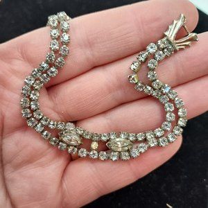 7" Rhinestone Bracelet in good vintage condition. some wear on the back side. Please see photos for deeper details. This bracelet is beautiful all stones present and clasp is working well.