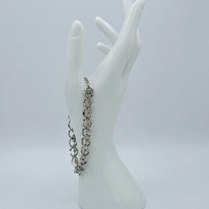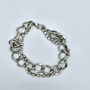 Rhinestone Bracelet Tennis Chain Link Double Strand Statement Jewelry Silvertone. 7". Unsigned. In great pre-owned condition.