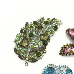 Rhinestone Brooch Set of 3 Leaf Floral Designs Multicolor Gold Silver Tone Resin