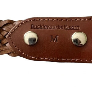 Rhinestone Buckle Adjustable Brown Woven Leather Belt M
