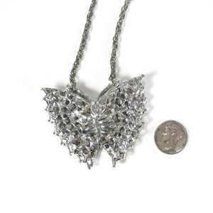 Rhinestone Butterfly Necklace, 24" Chain, 1970's