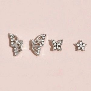 4 piece Silver Rhinestone Butterfly Stud Earring Set!