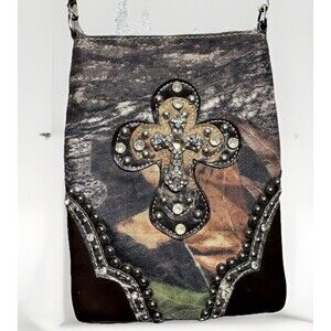 Rhinestone Camo Studded Cross Purse Chain Strap Rustic Coutures Cowgirl