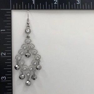 🌼 Rhinestone Chandelier Bead Silver Dangle Earrings