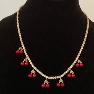 Rhinestone Cherry Charm Necklace – Collar con dijes de cereza y brillantes