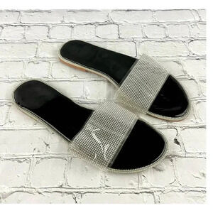 Rhinestone Clear One Band Slip On Sandals Flats Sz 10.5 EU 43
