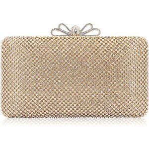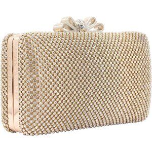 Rhinestone Clutch Purse with Crystal Bow Gold