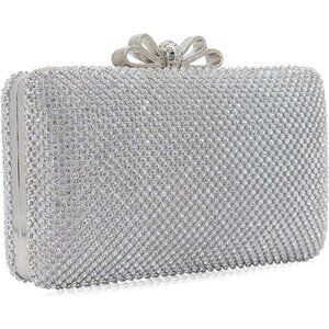 Rhinestone Clutch Purse with Crystal Bow Silver