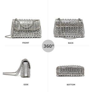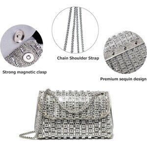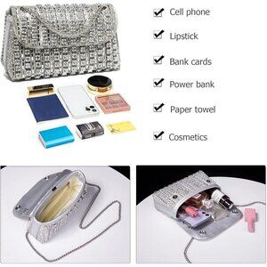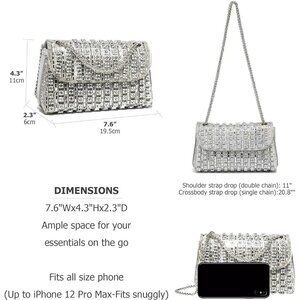 Spacious Design: Measuring 7.6" (19.5 cm) in length, 2.3" (6 cm) in width, and 4.3" (11 cm) in height, this glittering evening bag offers ample space for essentials like a cell phone, cards, cash, car keys, a small wallet, glasses, a compact mirror, lip gloss, and gum.