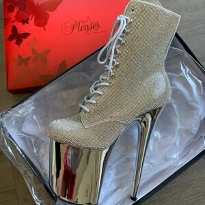 You gotta have these! They are not stiff like the glitter covered boots like I was expecting them to be. Amazing Flamingo 1020 Boot with 8” heel 4” platform.
