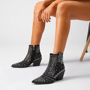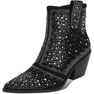 Unique Design: The surface of the Chelsea ankle boots is studded with sparkly crystals, dazzling and shiny like diamonds. More fashionable pointed toe and chunky heel optimize your body proportions.