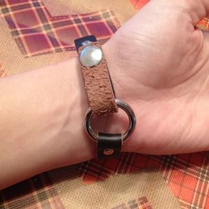 Rhinestone cross (one stone is a darker shade, as shown in pics) Brownish Black leather strap.