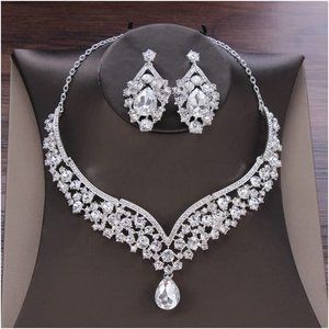 Rhinestone Crown Necklace Earrings Headdress, Bridal Wedding Jewelry Set