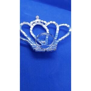Rhinestone Crown Shaped Ring or which is actually for holding a scarf around your neck in a very stylish statement style. Silver toned with clear rhinestones. Adjustable ring. Most likely intended for a scarf clip as the "ring" portion is not strong and bends easily but can be worn as a ring.