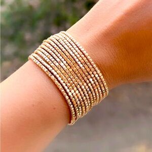 Rhinestone Crystal 12 PCS Layered Stretch Bracelets (Matte Gold Rhinestone)