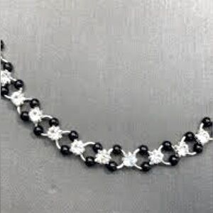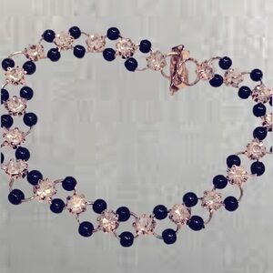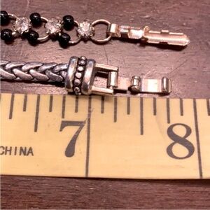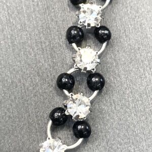 Rhinestone Crystal Black Bead Bracelet 8” Silver Tone