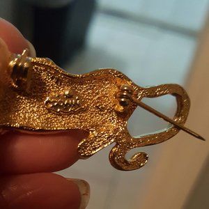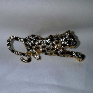 Rhinestone Crystal Pave Cheetah Brooch-Black Enameled Spots -Jeweled Green Eyes