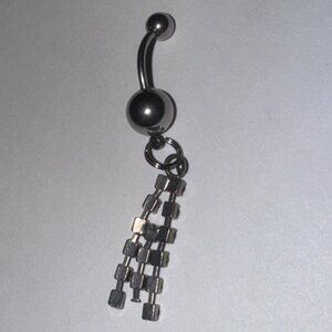 This belly ring has a 3 strand set of rhinestones and a clear gem on the belly ring.