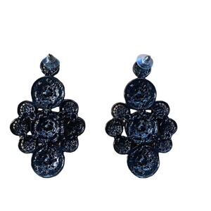 Rhinestone Dangle Dark Grey Earrings