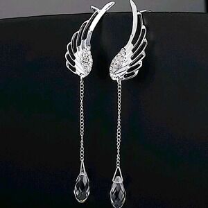 Rhinestone Decor Wing Shaped Ear Climber measures 2.8”
