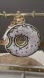 Sparklingrhinestone donut keychain with gold accents and a white tassel.