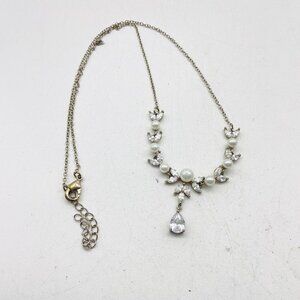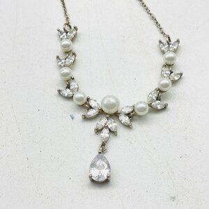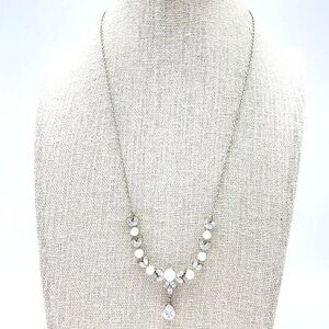 Rhinestone Drop Necklace Silver Tone Glam Bling Sparkle Holiday Party Classic