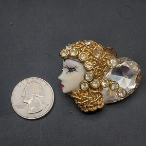 Rhinestone Egyptian Lady Head Brooch Handcrafted Artisan Linda Rosshirt