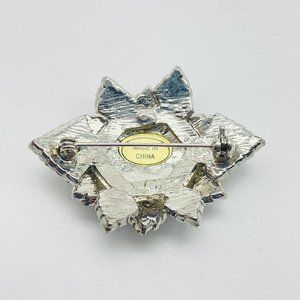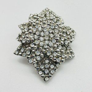 Rhinestone Encrusted Floral Brooch Silver Tone Classic Glam Bling Garden Party