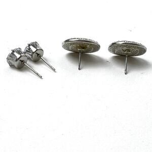 Rhinestone Fashion Earrings Lot 2 Silver Tone Classic Stud Sparkly Post Pierced
