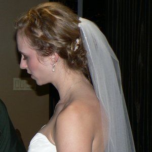 Single layer veil with rhinestone edging tucks easily into your hair for an effortless touch of subtle elegance.