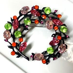 Rhinestone Floral Wreath Brooch Pin