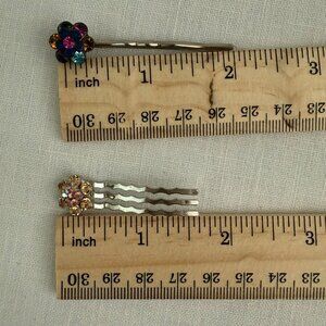 Size (in inches): Rhinestone Florals= 0.4" diameter, length of Golden floral pin=1.6", length of multicolor pin=2"
