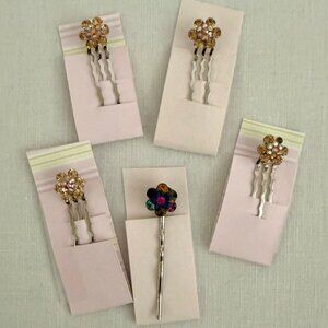 Rhinestone Flower Hair Jewelry Pins Set of 5 Multicolor Gold Floral Accessories