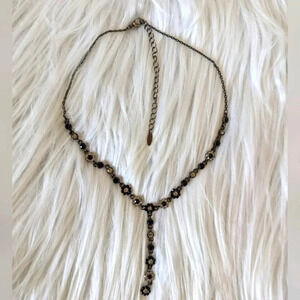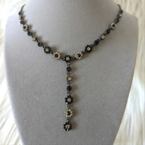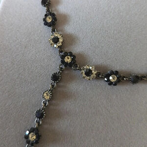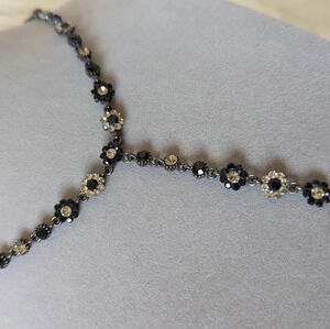 Rhinestone Flowers Necklace- Black Daisies- VCLM- Black and White crystals- Y2K