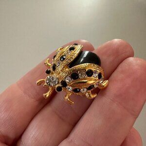 Rhinestone Fly Beatle Bug Hat Scarf Pins Lapel Clips Set of 4 Art to Wear Boho