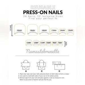 Quantity - Set of 24 nails in sizes tiny to large! This means no need to size your nails before purchase! 1 file and 1 adhesive strips.