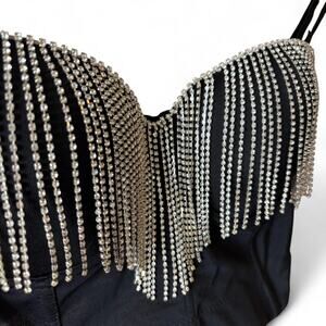 Rhinestone Fringe Corset Top – Black (Approx. Size M)