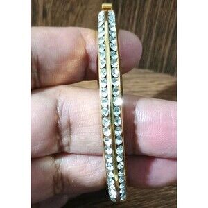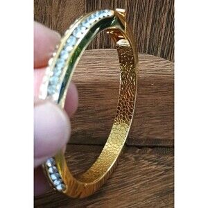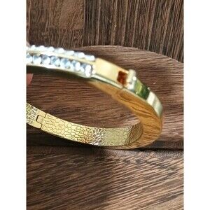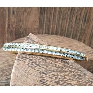 Rhinestone Gold Tone Hinged Bangle Vintage Bracelet. Wear as pictured
